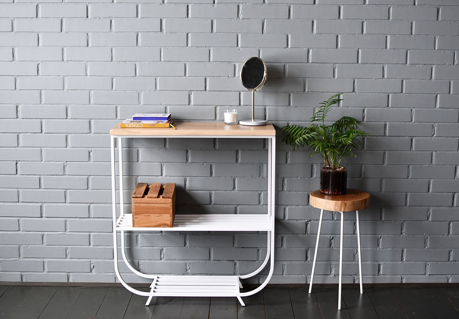 Консольный стол с тремя полками- функциональный и практичный предмет интерьера.